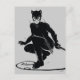 Ce graphique saisissant capture Catwoman dans son élément, mettant en valeur son agilité et sa furtivité alors qu'elle se prépare à l'action. L'illustration est rendue en noir et blanc gras, soulignant l'élégance de son costume et le mouvement dynamique de sa pose. Catwoman est représentée accroupie avec un fouet enroulé à ses côtés, son regard concentré et calculateur. L'effet d'encre éclaboussée autour d'elle ajoute un sentiment d'urgence et l'environnement chaotique dans lequel elle prospère. Cette œuvre d'art non seulement met en évidence le statut iconique de Catwoman en tant que voleuse qualifiée et anti-héroïne, mais également sa relation complexe avec Gotham et son chevalier noir. C'est une représentation puissante de l'un des alliés et adversaires les plus énigmatiques et redoutables de Batman.