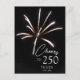 Honor 250 years of American freedom and independence with the stylish Cheers to 250 Years Fireworks Sestercentennial Party Invitation Postcard. This elegant quarter millennial 4th of July invite showcases a dazzling photograph of fireworks bursting against the black summer night sky. A truly unique 1776 - 2026 design, it’s the perfect inspo and idea to celebrate this once-in-a-lifetime two and a half centuries semiquincentennial Fourth of July milestone.