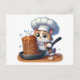 le chef cat en casquette blanc et tablier du chef, essayant de retourner une énorme pile de crêpes dans une poêle à frire.