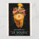 Cette carte postale présente une publicité vintage avec un chef joyeux en rotonde transportant les produits de la marque Le Soleil
