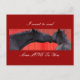 Carte postale rouge avec des chevaux noirs baiser est la carte parfaite pour envoyer à tout moment à ce spécial quelque dans votre vie, vos amis spéciaux chériront cette carte sur leur étagère. Remplissez votre message personnel avec timbres ou autocollants Postage correspondants.