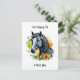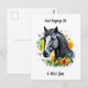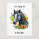 Carte Postale Cheval noir entouré de fleurs jaunes Salut