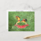 Un ancien cheval de Noël à bascule avec un arrière - plan vert rustique. Personnalisez le message et la police sur cette carte postale.