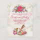 Une invitation festive à fêtes de noël. L'arrière - plan est un collage de style vintage avec une image défraîchie de roses roses, de feuilles verts et d'écriture française. Au-dessus se trouve un joli bouquet de noël poinsettia et un cheval victorien à bascule entouré de jolis pivoines roses.