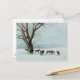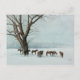 Cette carte postale présente une reproduction de ma peinture d'aquarelle originale de chevaux dans la neige aux fermes de chaussures de Hanovre.