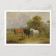 Carte Postale Chevaux : Mares et poulains dans un champ (huile s