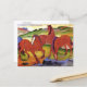 Carte postale d'art avec Red Horses (1911) de Franz Marc (1880-1916). Marc était un artiste allemand du mouvement expressionniste, il a fondé le groupe d'artistes appelé le Blue Rider (Der Blaue Reiter). Son travail se caractérise par des couleurs primaires vives et des animaux cubes. Ce tableau représente trois chevaux rouges sur un paysage vallonné vert.