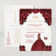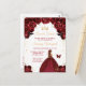 Cette invitation d'anniversaire de seize ans élégante et glamour présente une belle princesse aux cheveux bruns dans une robe de bal rouge bourgogne. Le texte combine une écriture manuscrite et des polices modernes sans serif pour un look classe et sophistiqué. Les arrangements floraux, le papillon et les confettis dorés créent le mélange parfait de rustique et de chic.