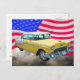 Carte Postale Chevrolet Bel Air 1955 Avec Drapeau Américain