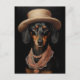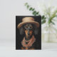Carte Postale Chic Dachshund Avec Casquette Crème