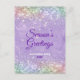 Mignonne iridescen lilas violet fausse parties scintillant Noël nouvelle année saluant carte postale. Célébrez la saison avec ce design chic et élégant, Il est simple, facile, mais moderne et festif. Il est entièrement personnalisable et personnalisé avec vos propres messages de salutation. Cette conception peut également être transférée sur n'importe quel produit sur zazzle. Veuillez ajouter votre adresse de retour pour faciliter l'envoi. Parfait pour envoyer vos souhaits de vacances à la famille et à des amis. VEUILLEZ NOTER : Il s'agit de graphiques imprimés plats - pas de parties scintillant réelle, de bijoux ou de pièces surélevées