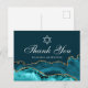 La décoration chic sarcelle et agate or orne le côté de cette carte de remerciement moderne de Bat Mitzvah. Mazel Tov ! Personnalisez avec votre nom sous l'étoile de David. Cartes parfaites pour une famille juive chic et élégante célébrant l'appel d'une fille à la Torah.