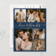 Elégant, minimaliste or et Mariage de script marine 5 Photo Collage Merci Postcard. Modèle carte de remerciements mariage moderne avec cinq (5) photos à l'avant et une (1) photo à l'arrière. Avec le texte "Amour et merci" dans une tourbillonnant police de script de typographie en or sur bleu marine couleur arrière - plan. Ajoutez votre nom, vos photos et votre message de remerciement. Si vous préférez écrire votre note à la main, supprimez simplement l'exemple de texte pour gagner de l'espace. Veuillez me contacter si vous avez besoin d'aide pour cette conception.