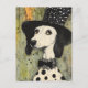 Carte Postale Chien à points blanc et noir doux en Poka à Tophat