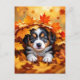 Carte Postale Chien chic mignon dans les feuilles d'automne
