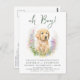 Invitation vos amis et votre famille pour célébrer l'arrivée de votre nouveau bébé garçon avec cette adorable invitation de chiot bonjour, accessoires de fête et cadeaux. Cette invitation baby shower présente un récupérateur doré à l'aquarelle peint à la main, parfait pour les amoureux de les chiens ! Le design est moderne et tendance, avec un jeu de couleurs vert sage et le texte "Oh Boy" pour célébrer l'arrivée prochaine d'un bébé garçon. DROIT D'AUTEUR © 2023 Judy Burrows, Black Dog Art - Tous droits réservés. Chien Chien Moderne Sage Vert Baby shower Invitation Carte postale