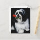 Un Chien Chih Tzu reproduit une photo tenant un rose dans la bouche.