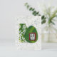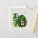 Illustration de chien mignon avec forme florale verte, ovale vert et fond blanc texturé.