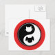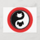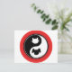 Symbole yin yang atypique à l'intérieur d'un cercle rouge, avec un chat et un chien engagés dans la poursuite sans fin.