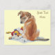Carte Postale chien de race mixte avec chiot mignon en peluche