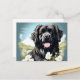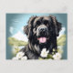 Carte Postale Chien de Terre-Neuve avec fleurs blanches