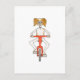 Ce mignon chien est sur une moto poussoir, et il fait du vélo. Le vélo est rouge. Cette image imprimée était à l'origine une illustration dessinée à la main et peinte.