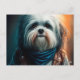 Carte Postale Chien Havanais en vélo peinture numérique