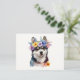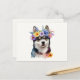 Carte Postale Chien Husky Sibérien Mignon avec des Fleurs