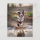 Image générée par l'IA d'un chien courant dans une flaque boueuse.