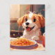 Un Chien blanc, taché de taches brunes, plonge d'abord dans une montagne de spaghettis. La sauce tomate éclabouille sa fourrure et la nappe blanche dans un délicieux gâchis. Rendu dans une composition étonnante et magistralement équilibrée (pensez au ratio d'or !), l'illustration évoque le détail, mais capricieux