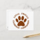 Un empreinte de patte de chien avec un effet de détresse. Texte et dessin en marron. Un design pour les gens qui aiment les chiens.