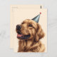 Illustration de dessin animé mignon de chien Retriever doré portant un chapeau d'anniversaire. Parfait pour les amoureux des animaux ou les parents de chiens.