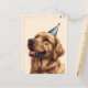 Illustration de dessin animé mignon de chien Retriever d'or portant un chapeau d'anniversaire. Parfait pour les amoureux des animaux ou les parents de chiens.