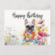 Cette carte postale d'anniversaire présente un Bulldog français dans un champ de fleurs. Le chien est entouré de fleurs colorées, avec un message d'anniversaire est écrit en script Cadeaux pour entraîneur, instructeur, enseignant, amis, maman, papa, petite amie/petit ami, collègue, hôtesse, voisin, lui/elle, couples, grands-parents, patron, enfants, meilleur ami, famille, beaux-parents, équipe, équipe,