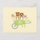 Belle illustration de deux chiens dans une brouette pleine de fleurs printanières.