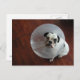 le chiot Selma n'était pas content après que le vétérinaire médecin lui ait mis ce terrible cône en plastique sur la tête