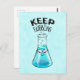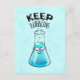 Carte postale de chimie mignonne pour les femmes en science avec un personnage de flacon souriant nerdy avec lunettes et le texte drôle Keep Bubbling.