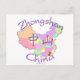 Zhongshan de la province du Guangdong sur une carte colorée de la Chine comprend les symboles chinois pour 'Zhongshan' et sa position est marquée sur la carte avec un coeur et un drapeau. Un cadeau d'adoption unique et magnifique pour la Chine ! Customisez-le avec un nom ou une photo ! Conçu par Hendrika de RedThreadMaps.com