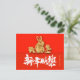 Grands voeux "Bonne année" en chinois (calligraphie moderne blanche) et en anglais, Lapin en papier doré coupé (image imprimée). Conception sur carte postale horizontale avec arrière - plan rouge + papier texturé doré (image imprimée) à l'intérieur. Vous pouvez facilement modifier la couleur de l'arrière - plan en cliquant sur le bouton personnaliser. Carte de voeux, autocollant et plus encore... Disponible avec d'autres découpes de papier Rabbit. Parfait pour le Nouvel An 2023 du lapin chinois.
