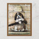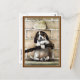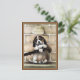 Nous avons ici un mignon chien chiot de 4 semaines, espérant être adopté. Le chiot se penche sur un mur de briques et tient un bâton. Cette adorable image de chiot a été publiée à l'origine comme une carte de publicité par L. Prang & Co. Elle a été créée par M.W. Bowsall à la fin des années 1800 ou très début 1900.
