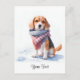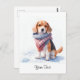 Joli motif aquarelle avec une illustration d'un chiot Beagle aquarelle sur fond blanc hivernal. Cette carte postale est idéale pour des notes personnelles, les organisations de sauvetage et d'adoption de chiens, les salutations, merci, tu me manques, désolé, je pense à toi, etc. La correspondance professionnelle, les enclosures de cadeaux avec des messages spéciaux, les annonces, nouvelle maison, mariage, remise de diplôme, tu me manques, félicitations, anniversaire, je pense à toi, amour, désolé, amitié, fille, fils, merci, merci beaucoup, retrouvons-nous, prompt rétablissement. Personnalisable avec un nom ou un texte.
