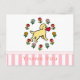 Carte postale en Merci de marionnettes de l'extracteur jaune du Labrador. Un adorable chiot du Labrador jaune regarde en arrière avec un petit coeur rouge dans sa bouche en attendant votre attention! ! Vous pouvez ajouter du texte. Design de dessin animé fantasque et mignon Labrador Retriever créé par Naomi Ochiai du Japon. De grands cadeaux amusants pour les amoureux de les chiens qui possèdent des Labradors Jaunes. Motif à rayures roses et blanches avec une couronne de fleurs.