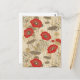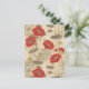 Restez en contact avec vos amis et vos proches grâce à une belle carte postale motif de chiyogami ornée de fleurs de pavots rouges sur un arrière - plan crème.