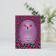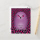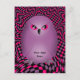 Chouette punk mignonne en violet sur un arrière - plan de damier tourbillonnant en violet, rose chaud et noir sur une carte postale mignonne.