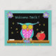 Carte Postale Chouette avec tableau noir et pomme retour à l'éco