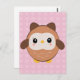 Carte postale adorable Baby Owl. Une adorable petite chouette avec un corps bouché, des petites ailes brunes et de minuscules pieds jaunes. Idéal pour les amateurs de chouettes et les fans de kawaii en câlins.