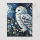 Carte Postale Chouette blanche sur branche dans la peinture lune
