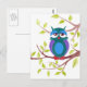Carte Postale Chouette endormie mignonne sur un dessin d'arbre