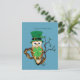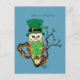 Chouette portant un chapeau vert leprechaun haut avec deux trèfles dedans.