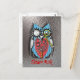 Carte Postale Chouette mécanique drôle Punk à vapeur Rouge Bleu